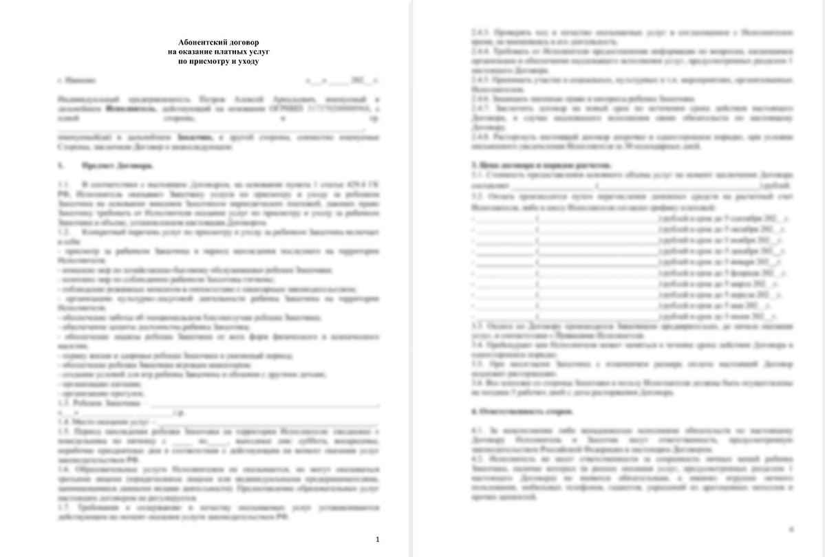 - договор на оказание услуг по присмотру и уходу
