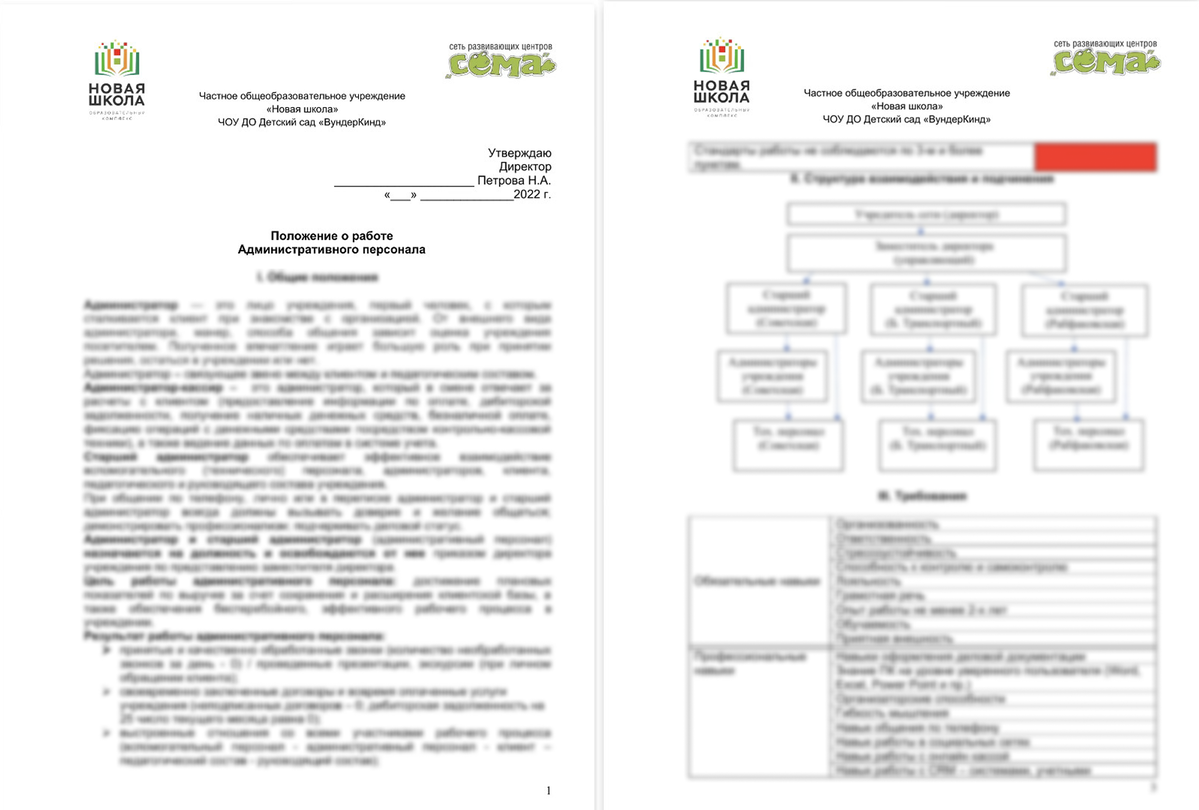 - положение о работе административного персонала