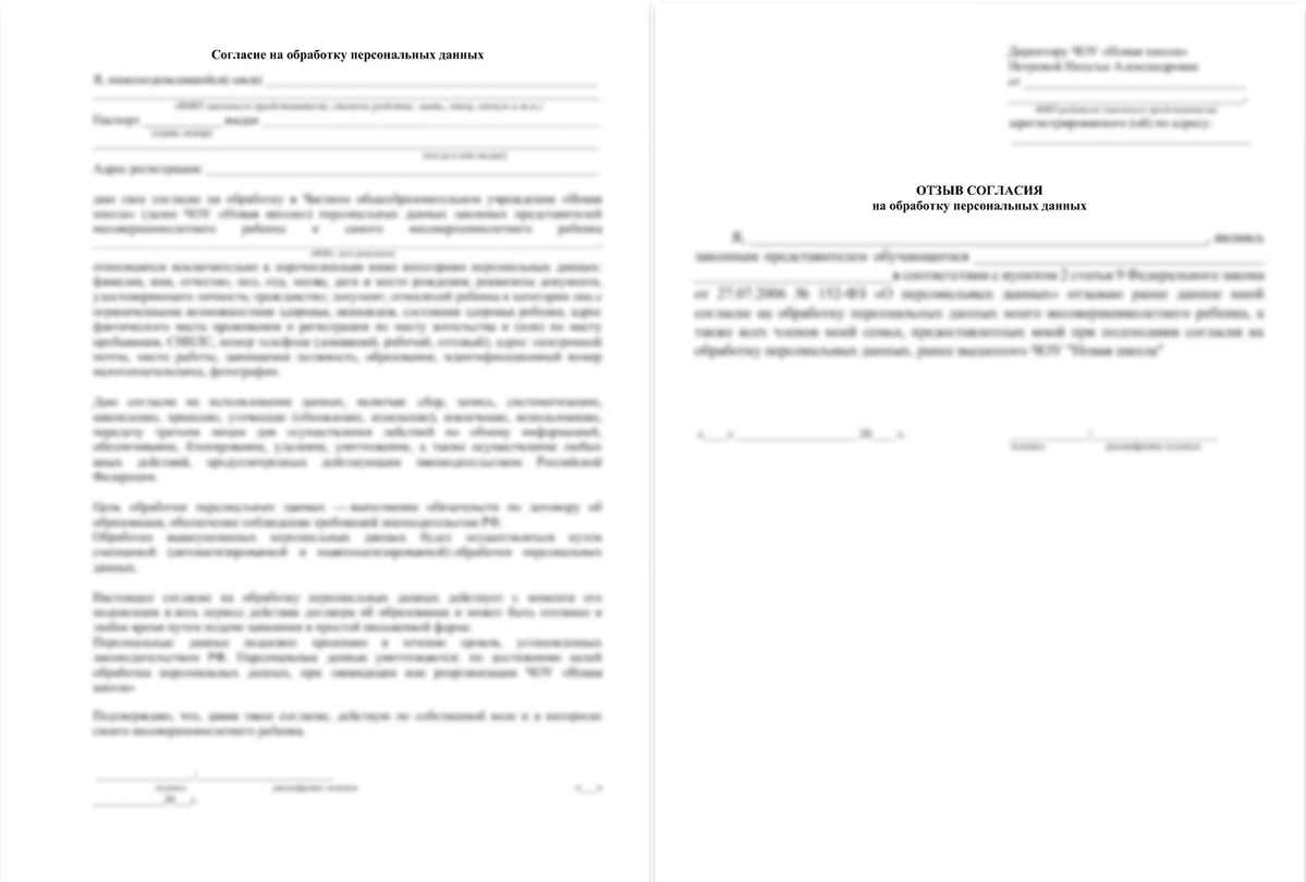 Согласия на обработку персональных данных