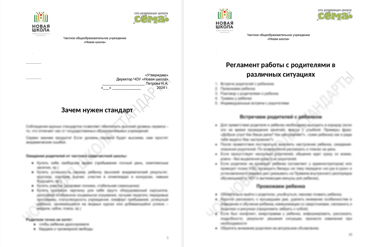 - стандарт работы с родителями