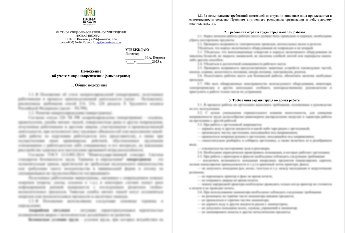 - Положения (о видеонаблюдении, системе управления охраной труда и пр.)